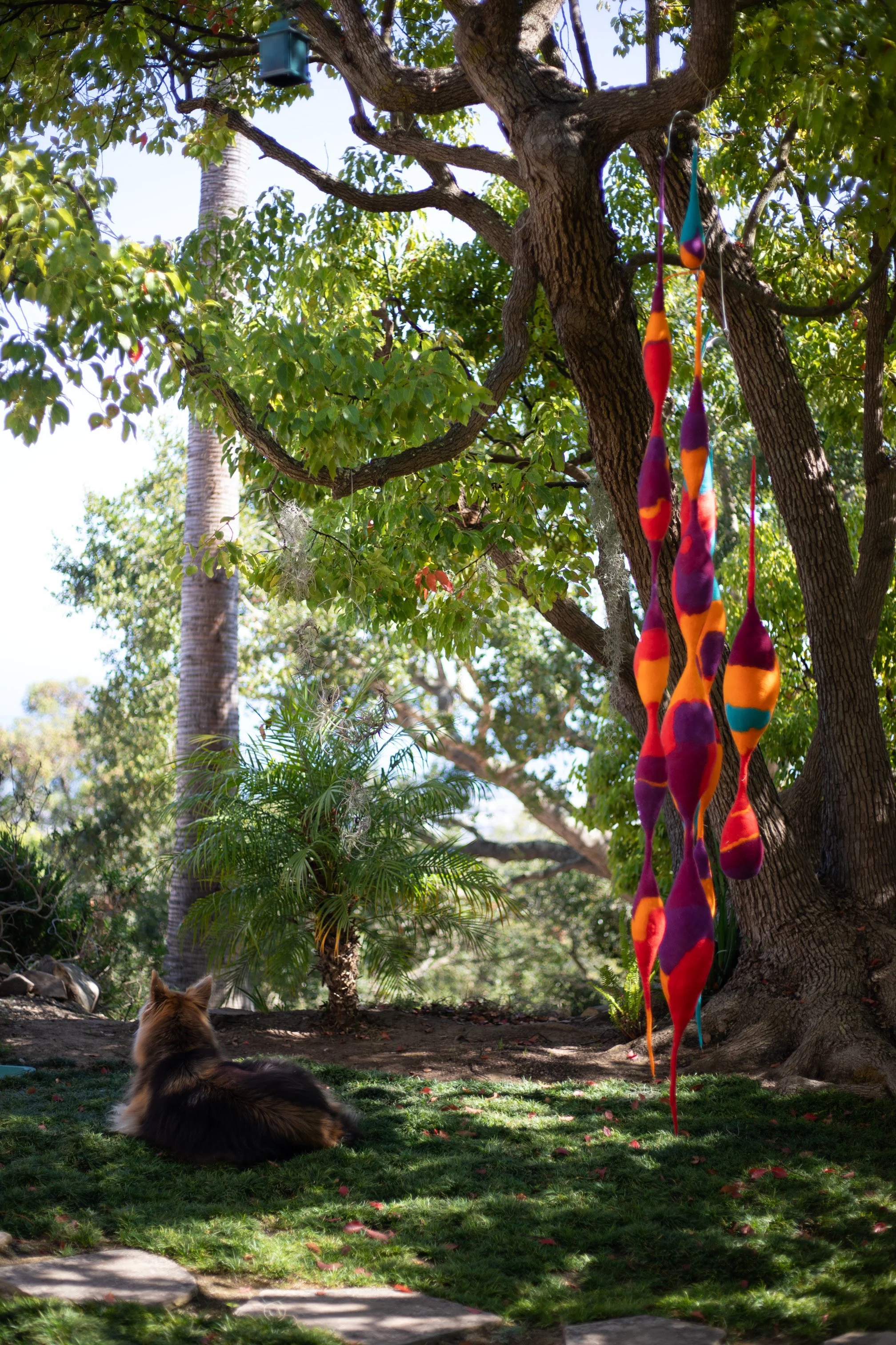 I create large-scale felted textile sculptures - suspended, organic forms that explore motion, stillness, and the tactile poetry of fiber in space.
